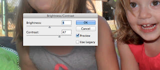 The first step was to use the lasso tool to select the area I need to adjust. I decided to do the two babies on the left separately. Once the selection was made, I went to Image>Adjustments>Brightness/Contrast. I was then able to move the slider until I got the effect I wanted. The best order in my opinion was to alter contrast first then follow with the brightness slider to correct exposure issues.